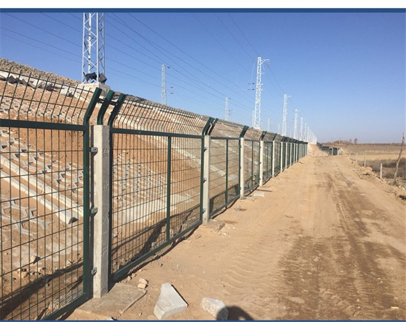 4.使用铁路护栏网使围界整体和谐、美观。主要作为做铁路两侧的隔离和的防护使用,是一种铁路铁路封闭场所专业用的隔离栅产品。它具有耐用、美观、视野开阔的特点,并具有优良的防护性能。整个铁路隔离栅采用立柱采用混凝土浇筑件,工程造价低,整体强度高、整体稳定性好,网体上的彩色塑层具有良好的抗腐蚀和装饰效果。