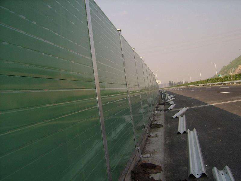 特点:直立型声屏障的减噪量与噪声的频率、声屏障的高度以及声源与接收点之间的距离等因素有关。隔音墙的减噪效果与噪声的频率成分关系很大,对大于2000Hz的高频声比800一1000Hz左右的中频声的减噪效果要好,但对于25Hz左右的低频声.则由于声波波长比较长而很容易从墙上方绕射过去,所以效果就差。通常,隔音墙对高频声可降低l0—15dB。隔音墙的高度,可根据声源与接收点之间的距离设计,墙的高度增加一倍,则其减噪量可增加6dB,为了使隔音墙的减噪效果较好,应尽量使隔音墙靠近声源或接收点