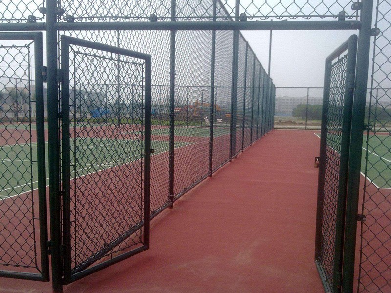 网球场两侧围网的高度为3米,两端4米。场地若临居民区或马路,其高度均匀为4米以上,另外在网球场的边侧为了使观众看比赛容易,可设H=0.8O米的围网。屋顶网球场的挡网高度为6米以上。丝径3.0-5.0mm,立柱60*2.5mm钢管,穿条6.0mm