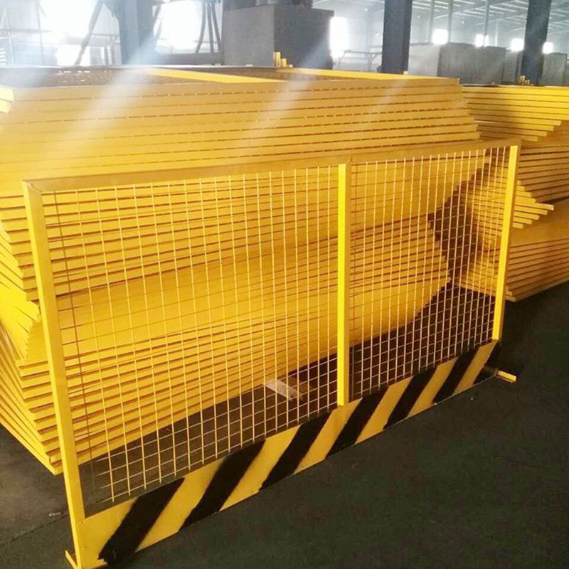 基坑临边护栏网片设计为黄色、立柱为红色,均为喷绘,以达到红白相间的警示效果。网片网格为50*50mm,钢丝直径为3.5mm。